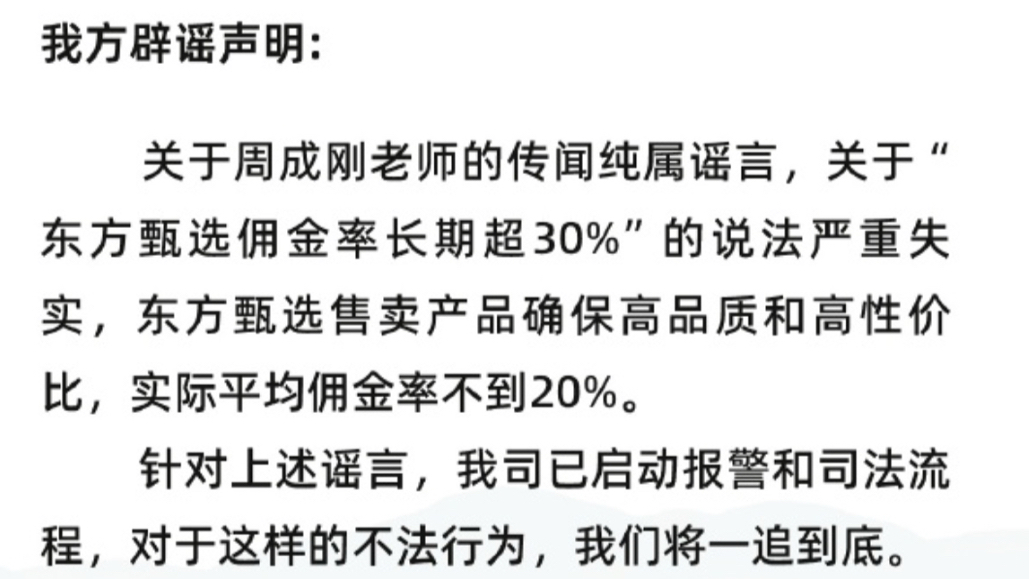 新东方CEO被立案调查?公司回应:纯属谣言,已报警东方甄选已启动报警和司法流程,对于这样的不法行为,将一追到底。
