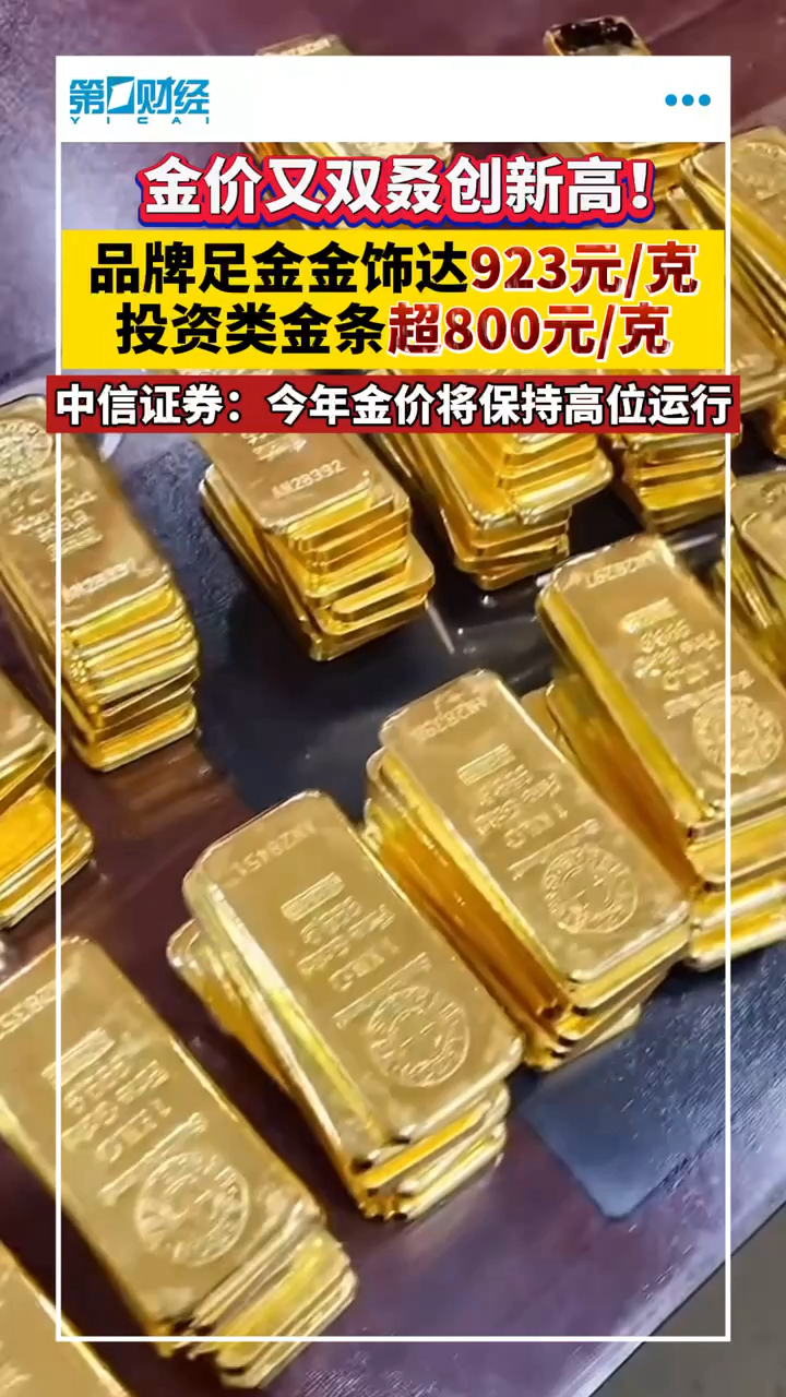 00'11'' 金价又双叒创新高!品牌足金金饰达923元/克,投资类金条超800元/克,中信证券:今年金价将保持高位运行金价又双叒创新高!品牌足金金饰达923元/克,投资类金条超800元/克,中信证券:今年金价将保持高位运行